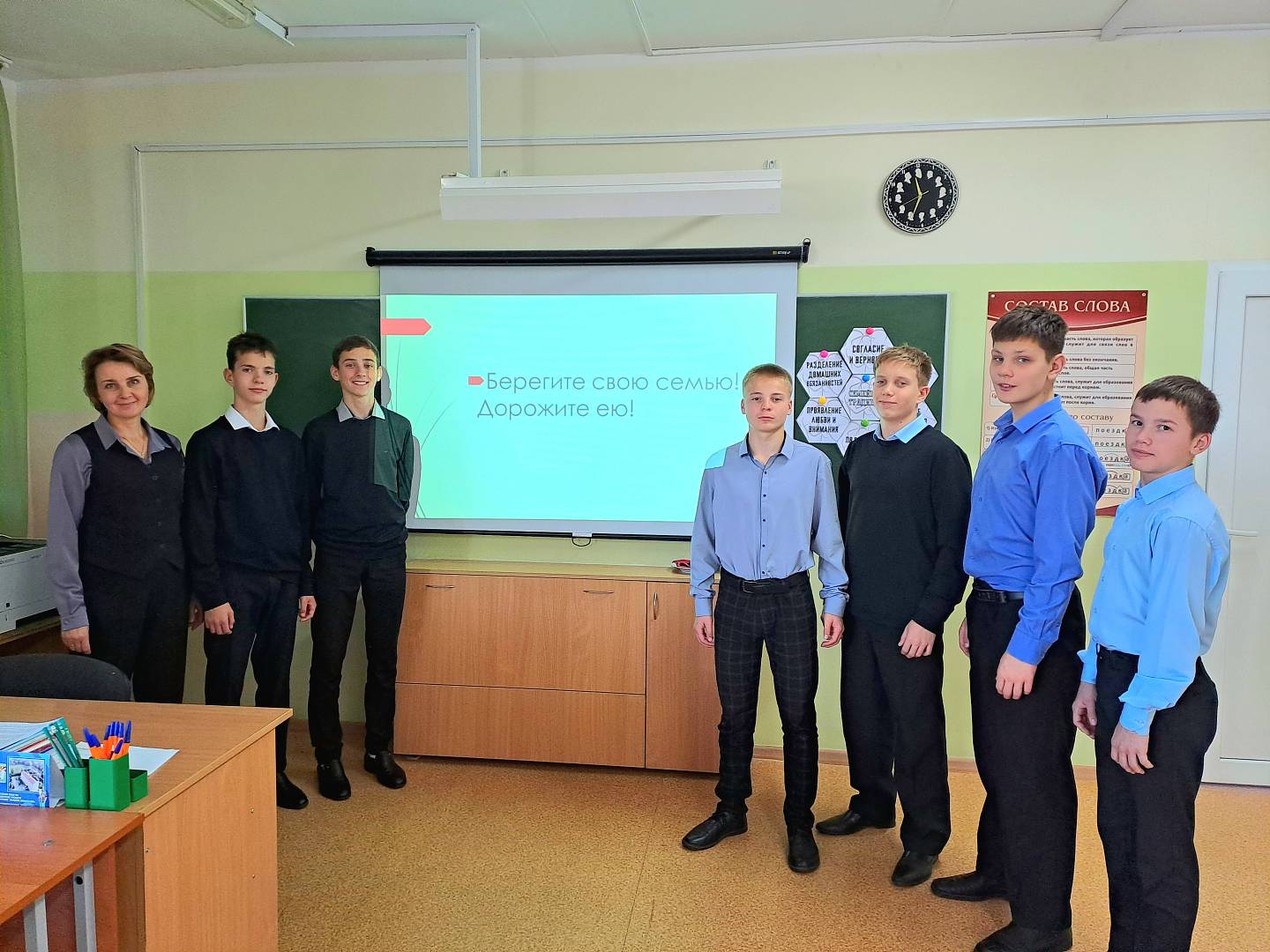 Именно родители формируют детскую картину мира, то, как ребенок в последствии отнесется к себе, окружающим и жизни в целом - целиком и полностью зависит от родителей. Поэтому важным моментом классного часа было видеообращение родителей обучающихся. Для ребят это был приятный сюрприз: увидеть родные места, увидеть и услышать родных людей! С какой любовью мальчишки смотрели на своих мам и бабушек!