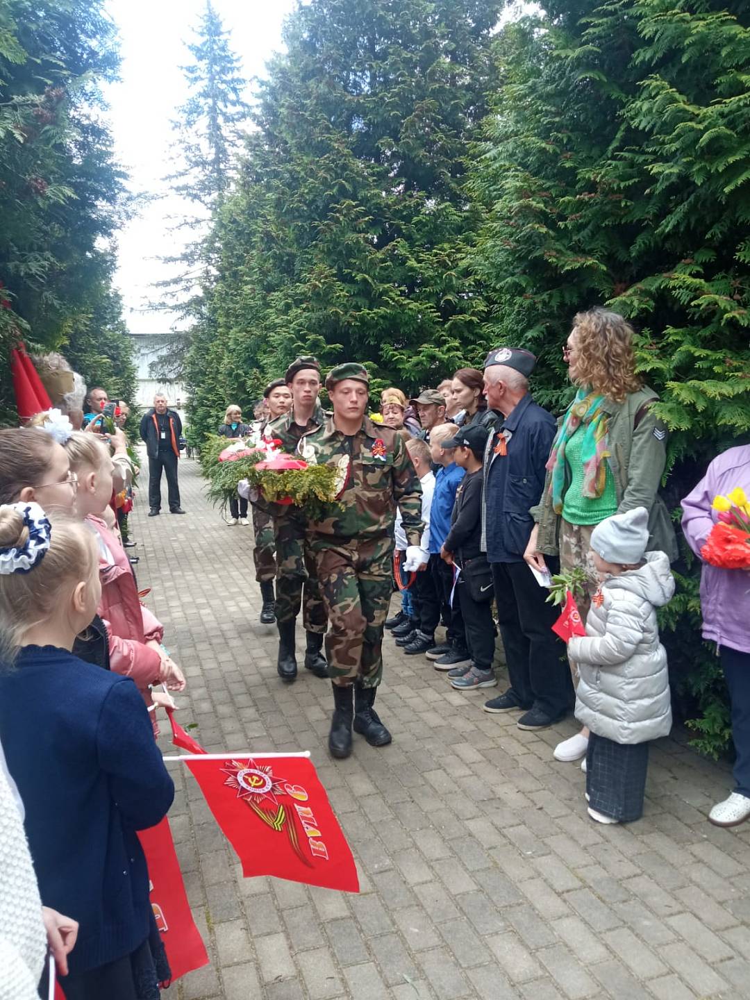 В год празднования 80 летней годовщины Победы в Великой Отечественной войне наши учащиеся сплели самостоятельно траурную гирлянду и почетным караулом, в процессе митинга, организованного жителями поселка, возложили к памятнику. Около 300 советских воинов упокоены в этом месте, и подрастающее поколение должно знать их подвиги, в Неманском СУВУ, знают.