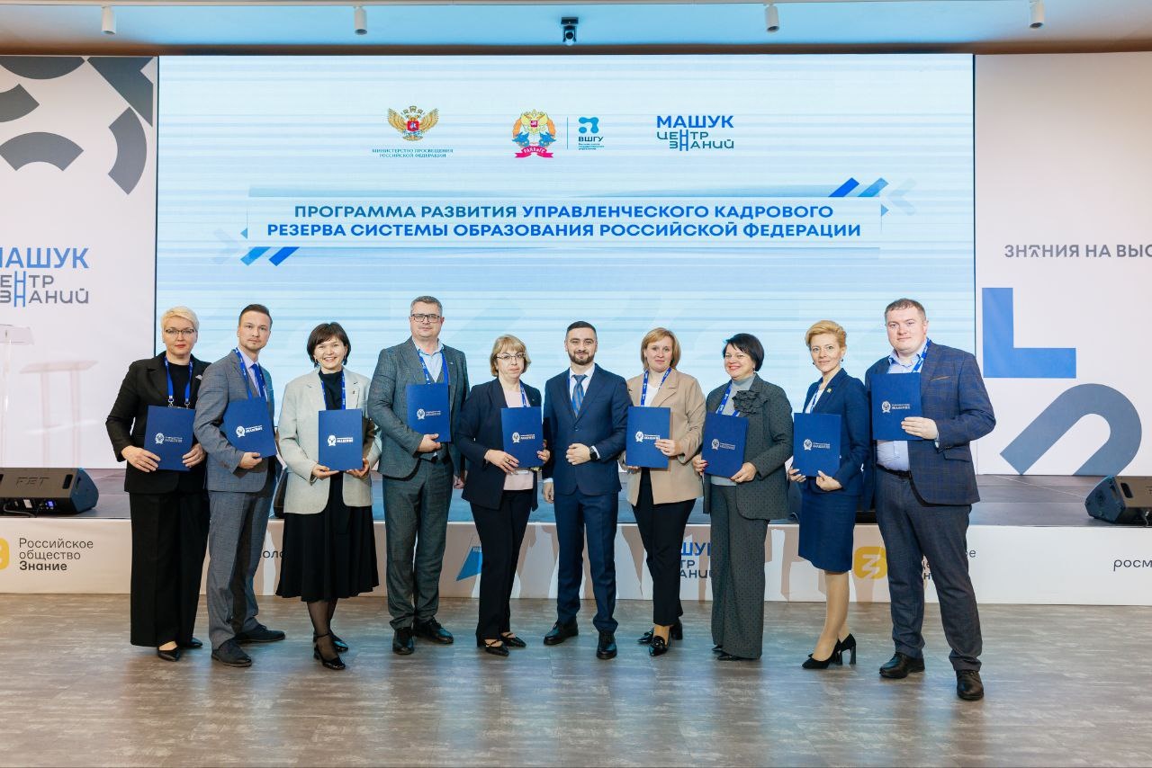 Команда «Машука» активно реализует задачу, поставленную Президентом России Владимиром Путиным, по подготовке нового кадрового резерва для системы образования. Центр знаний запустил в 2024 году совместно с Высшей школой государственного управления Президентской академии при поддержке Министерства просвещения РФ первый поток программы высшего кадрового резерва для системы образования. Ее выпускниками стали 70 участников, среди которых победители всероссийских профессиональных конкурсов, заслуженные педагоги, директора школ. Они разработали восемь уникальных проектов, прошедших экспертную оценку Министерства просвещения РФ. Флагманская программа позволила комплексно подготовить действующих руководителей к существующим изменениям системы образования и создать новые социальные лифты. По ее итогам три участника получили перспективные карьерные предложения в федеральные и региональные органы власти.