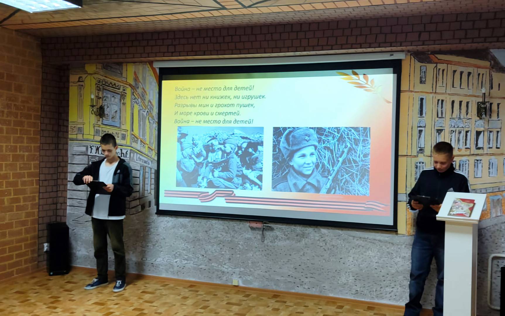 В музейной комнате учреждения состоялась презентация проектной работы учителей «Героическая поэма «Войной украденное детство…»», где ребята в сопровождении исторических справок и выдержек из военных хроник с особым трепетом прочли строки стихотворений военных лет и о военном периоде.