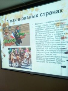 в нашем учебном заведении проведен познавательный час «История возникновения праздника 1 Мая», где ребята познакомились с историей возникновения праздника в нашей стране и приняли участие в беседе о его значении в России и мире.