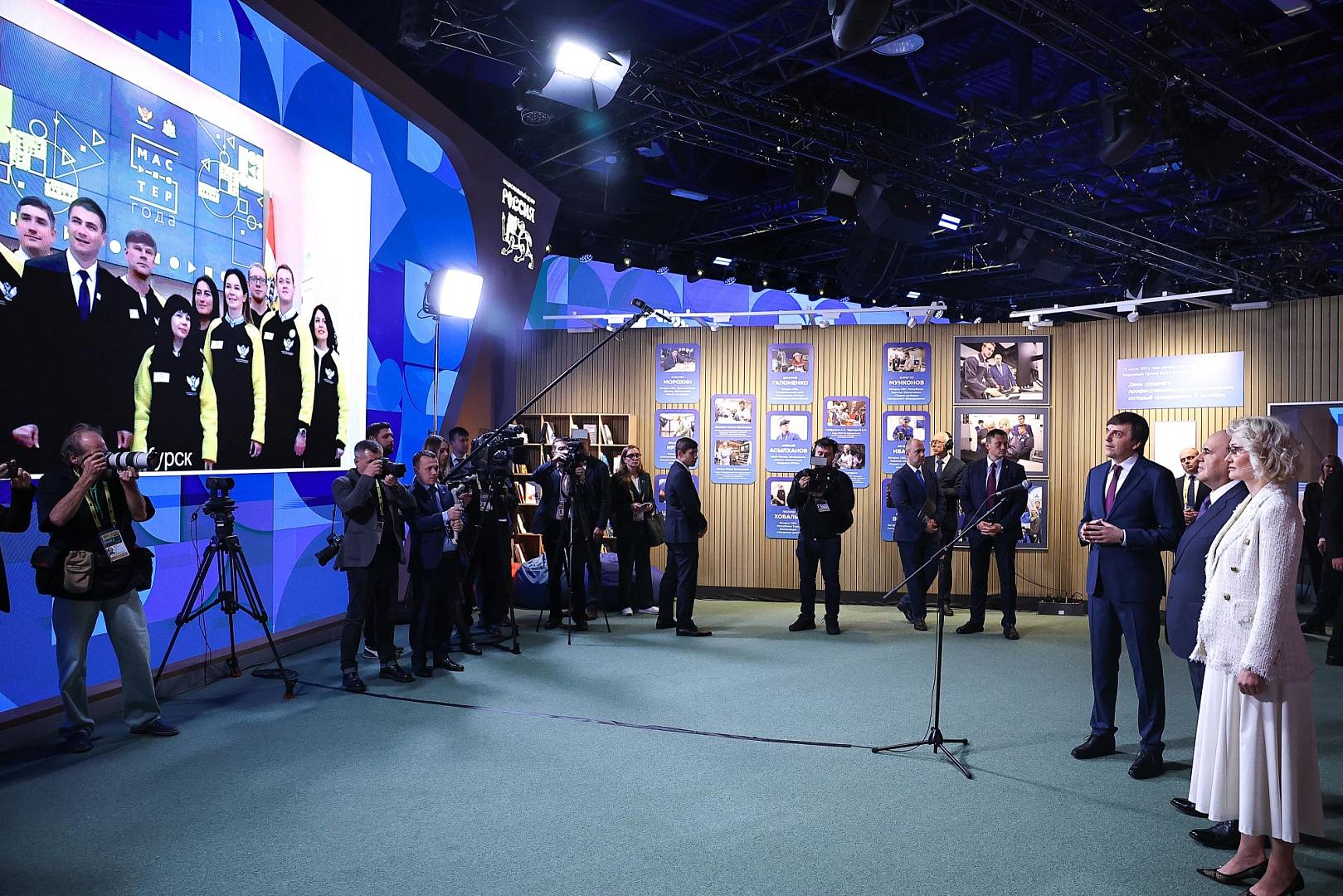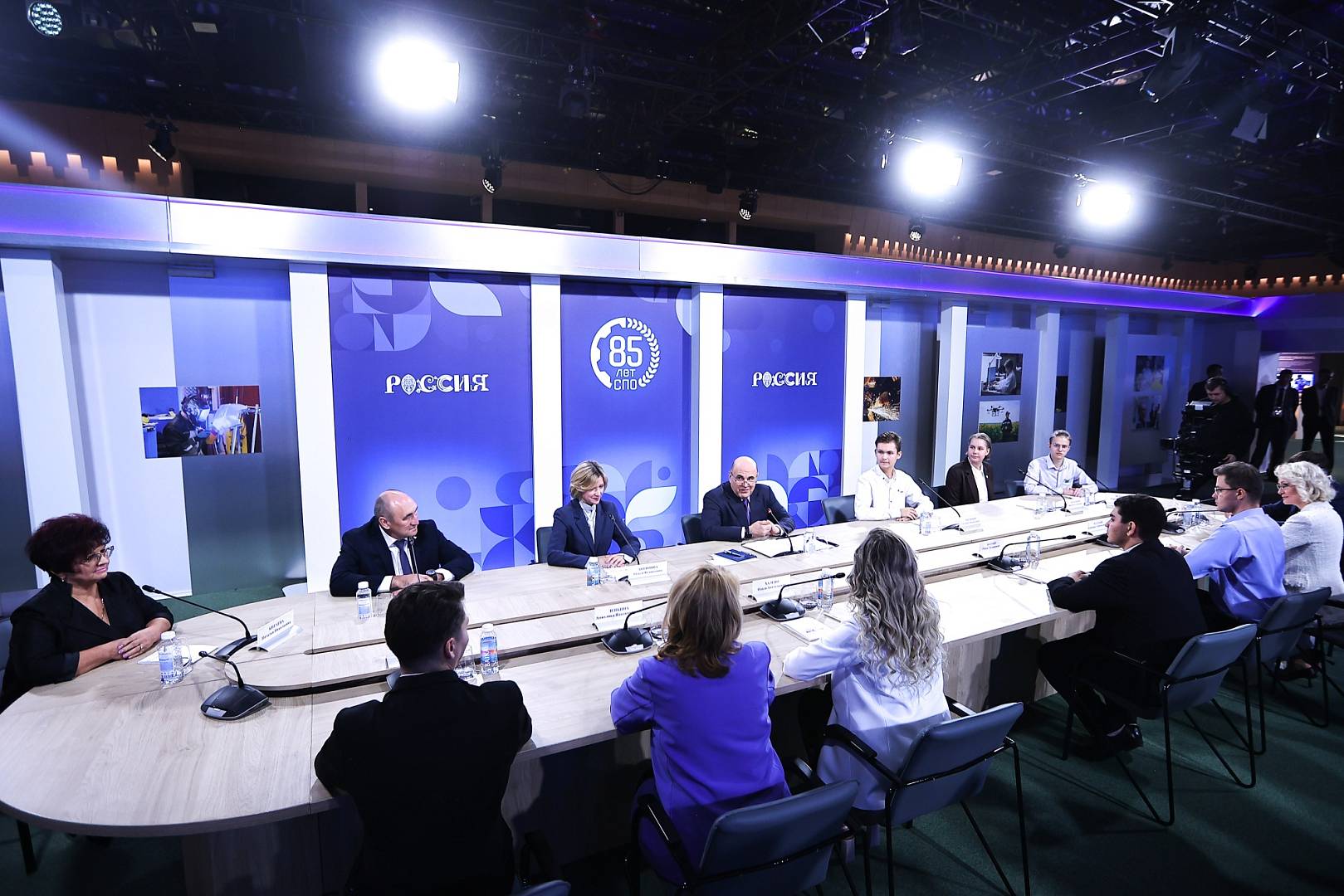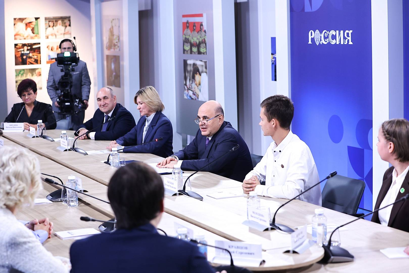 Также глава Правительства России пообщался с победителями и призерами национальных чемпионатов профессионального мастерства, Всероссийского конкурса «Мастер года», студентами и директорами ведущих кластеров федерального проекта «Профессионалитет». В ходе общения он ответил на вопросы участников встречи.