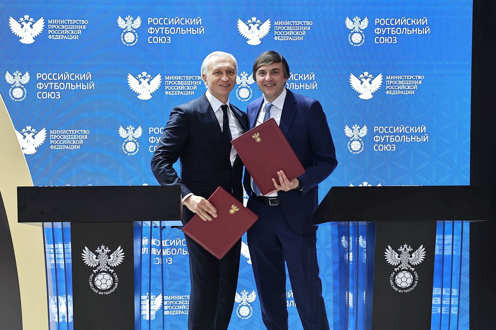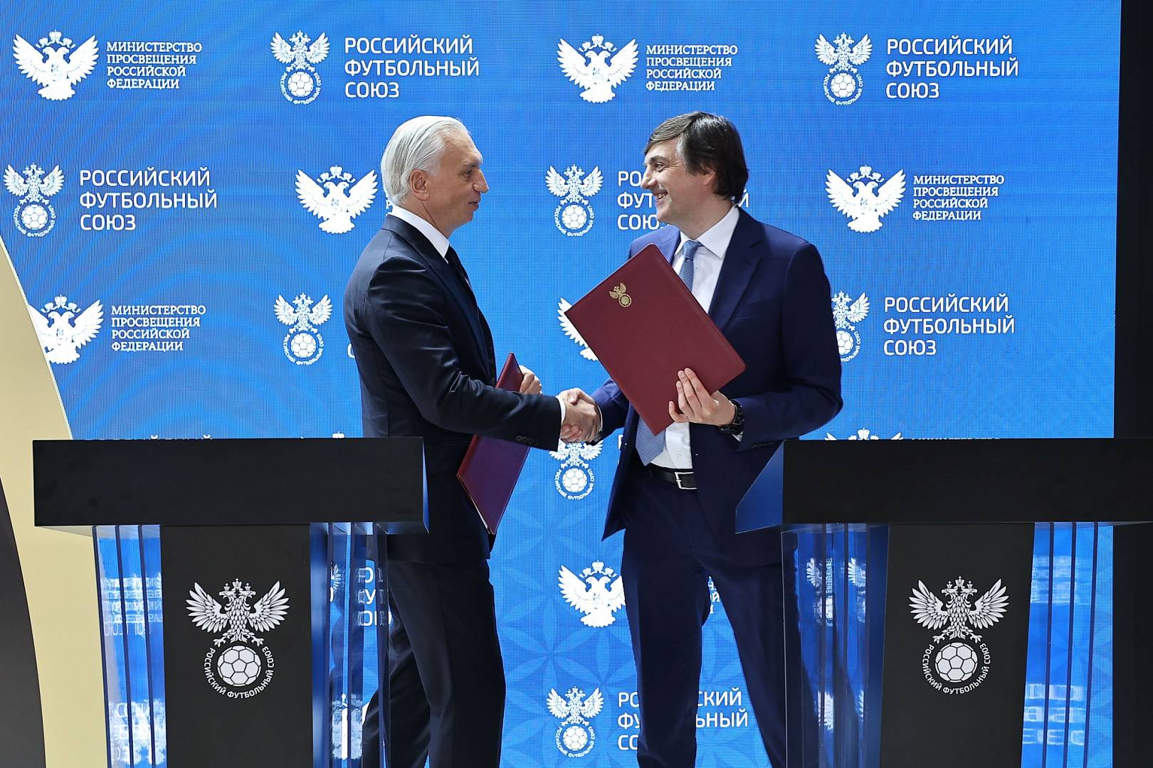Министерство просвещения Российской Федерации и Российский футбольный союз (РФС) заключили соглашение о сотрудничестве по развитию футбола в России и реализации совместных проектов и программ. Документ подписали Министр просвещения РФ Сергей Кравцов и президент РФС Александр Дюков в рамках Петербургского международного экономического форума.