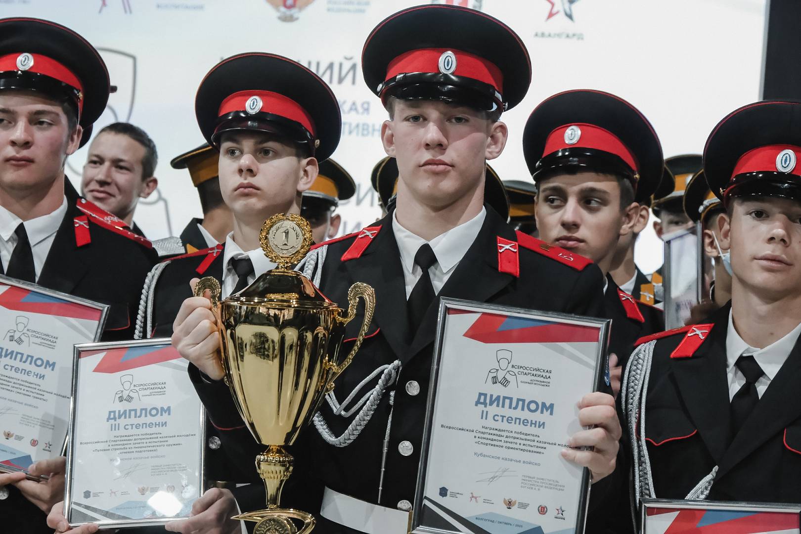 Победители и призеры Всероссийской спартакиады допризывной казачьей молодежи определились в ходе нескольких соревнований, таких как «Спортивное ориентирование», «Гиревой спорт», «Перетягивание каната», «Пулевая стрельба из пневматического оружия», «Легкая атлетика» (метание гранаты), «Легкая атлетика» (эстафета 100 + 200 + 300 + 400), «Строевая подготовка», интеллектуальный турнир «Великая поступь Победы!».