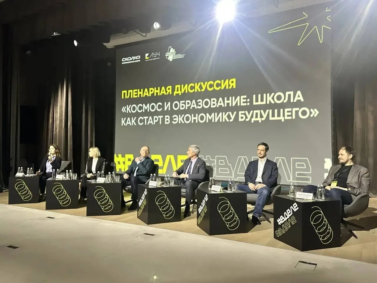 В ходе сессии также выступили Андрей Комаров, предприниматель, социальный инвестор, член правления Российского союза промышленников и предпринимателей, основатель школы «Сколка», Ольга Петрова, заместитель Министра науки и высшего образования РФ, куратор проекта «Кадры для космоса», Дмитрий Баканов, генеральный директор госкорпорации «Роскосмос», Михаил Гордин, ректор Московского государственного технического университета им. Н.Э. Баумана, Дмитрий Земцов, проректор Национального исследовательского университета «Высшая школа экономики», лидер рабочей группы Национальной технологической инициативы «Кружковое движение», Андрей Богданов, исполнительный директор Фонда развития Физтех-школ, директор Технопарка Физтех-лицея им. П.Л. Капицы.