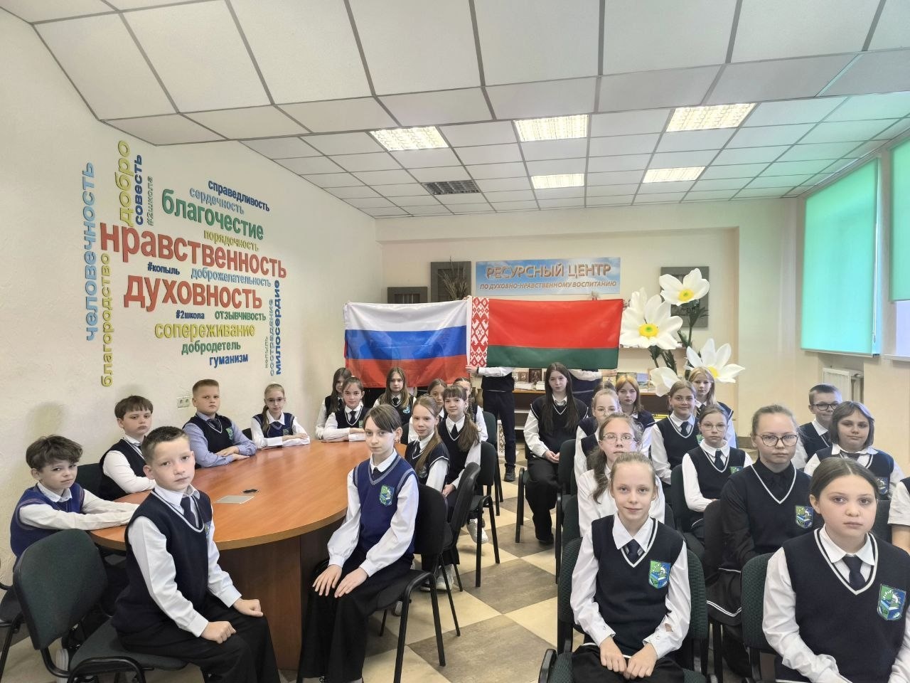 Школьники обсудили ключевые моменты общей истории двух стран, успешные совместные инициативы и значимые достижения Союзного государства, в том числе строительство Белорусской атомной электростанции, развитие союзного электротранспорта, космической отрасли и новых научно-технологических проектов.