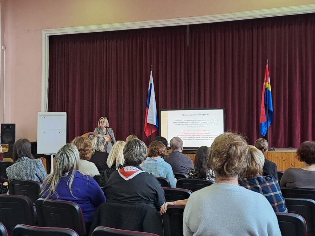 В практической части семинара Головина Лариса Михайловна, педагог-психолог МАОУ СОШ № 4 г.Калиниграда, лауреат регионального конкурса «Лучшая методическая разработка по профилактике деструктивного поведения подростков и молодёжи», представила программу «Написанное остаётся. Кибербуллинг».
