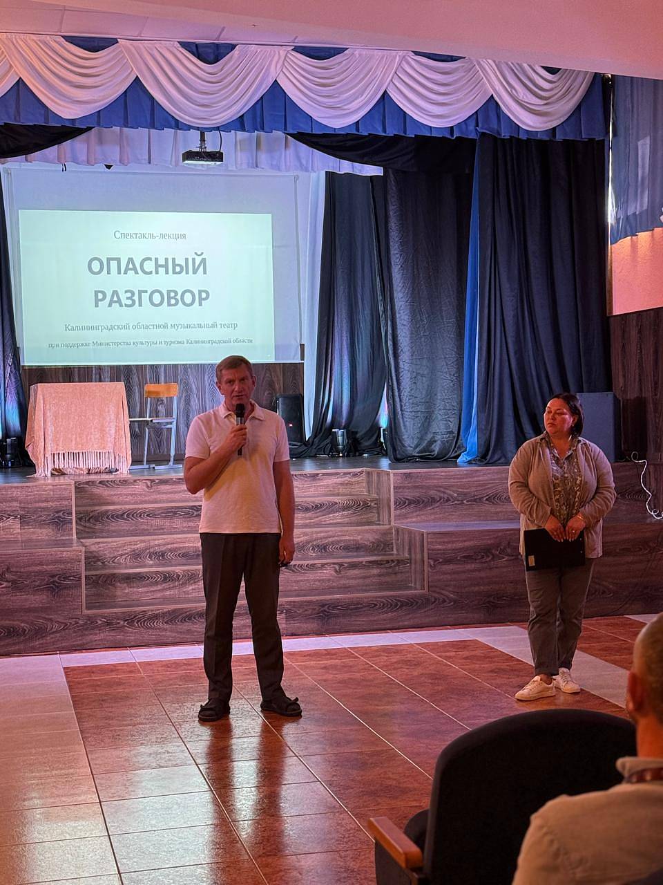 В целях реализации установок Комплексного плана противодействия идеологии терроризма в Российской Федерации на сцене Неманского СУВУ Калининградский областной музыкальный театр представил спектакль-лекию «Опасный разговор», в доступной форме представляющего опасность вовлечения молодых людей в преступную террористическую деятельность, наглядно показывает потенциально опасные ситуации, с которыми может столкнуться любой подросток в реальной жизни и в сети Интернет. Благодарим за вклад в развитие обучающихся автора пьесы Евгению Чугрееву, актёров Евгения Макаревича и Алину Марчак.