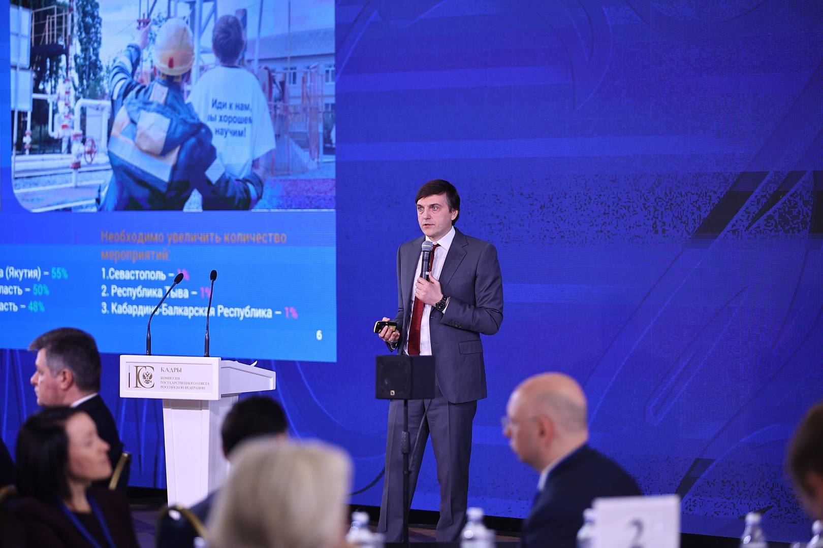 «Сегодня на расширенное заседание комиссии Госсовета «Кадры» вынесены критически важные вопросы. С проблемой нехватки специалистов сталкиваются самые разные отрасли экономики. И в ближайшие годы она будет только обостряться. Спрос растет быстрее, чем соискатели появляются на рынке. Система подготовки кадров не успевает за постоянно меняющимися запросами работодателей. Задачи достижения технологического лидерства, поставленные Президентом, освоение новых технологий, которые приходят в нашу жизнь, требуют большого человеческого потенциала», – подчеркнул помощник Президента Российской Федерации Алексей Дюмин.