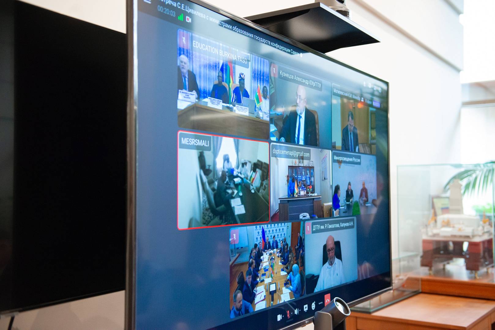 В очном формате к обсуждению присоединилась делегация Республики Джибути во главе с Министром образования и профессионального обучения Мустафой Мохамедом Махамудом. Другие африканские страны представили министры высшего и среднего образования. Участие приняли Министр высшего образования и научных исследований Республики Мали Бурема Кансай, Министр национального образования Республики Мали Амаду Си Саване, Министр высшего образования, научных исследований и инноваций Буркина-Фасо Аджима Тиомбиано, Министр среднего образования, профессионального и технического обучения Буркина-Фасо Бубакар Савадого, Министр базового образования, ликвидации неграмотности и продвижения национальных языков Буркина-Фасо Жак Состен Дингара, Министр высшего образования, исследований и технологических инноваций Республики Нигер Мамаду Сайду.