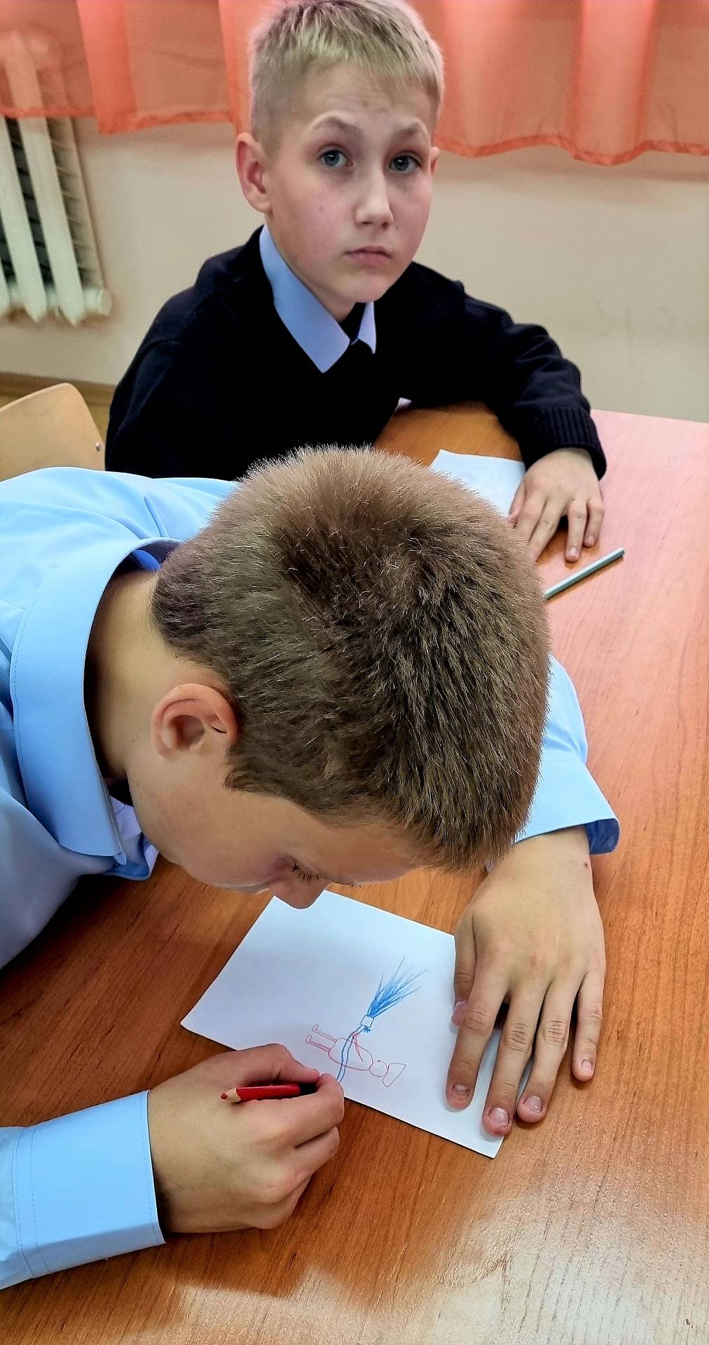 После беседы и просмотра коротких видеороликов ребятам было предложено выполнить творческое задание: изобразить самую востребованную профессию на рынке труда. Вариантов было много, но все сошлись на мнении, что рабочие профессии, такие как сварщик, автослесарь, строитель, штукатур, садовник и другие, являются самыми востребованными на сегодняшний день.