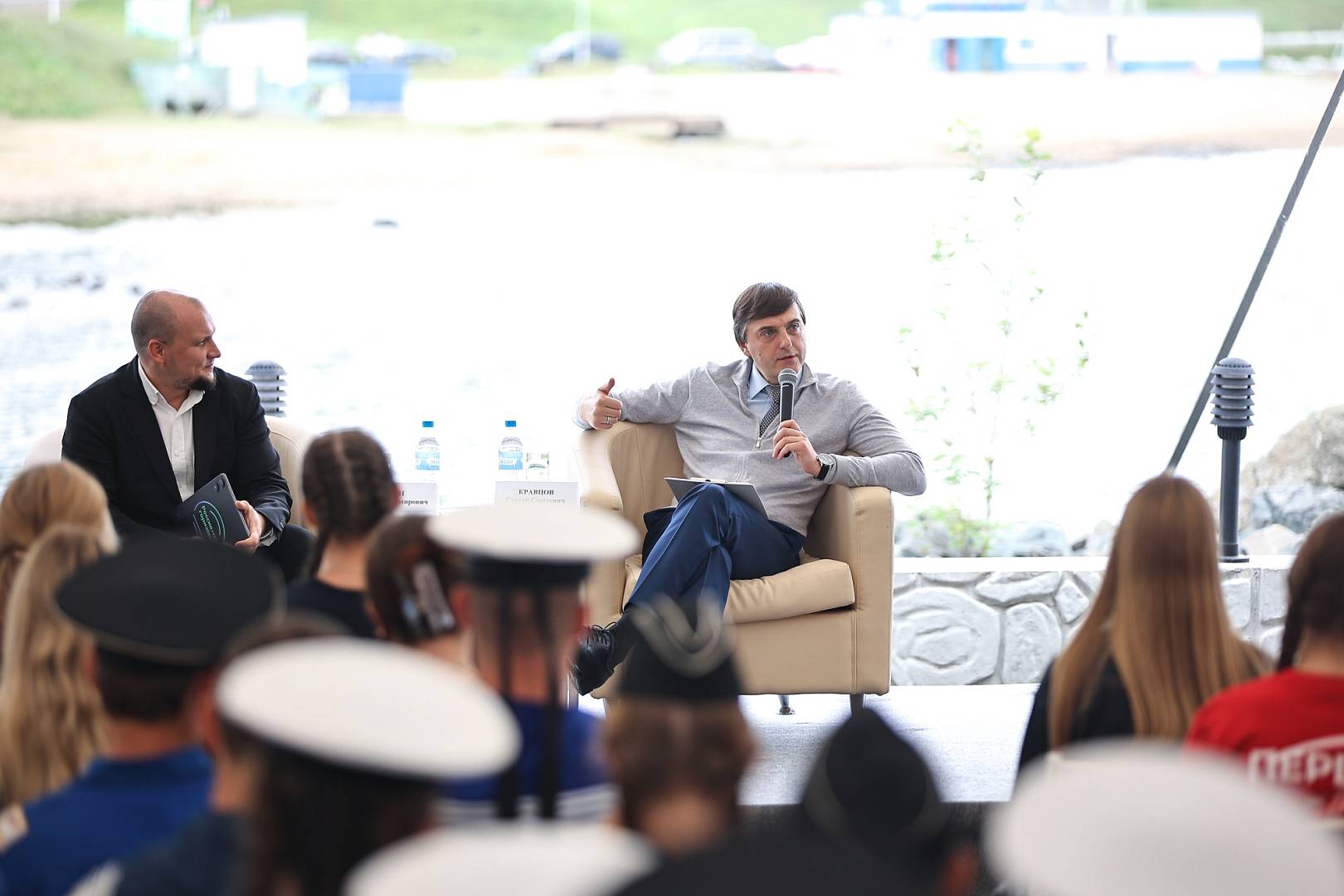 Сергей Кравцов и Иван Есин обсудили с ребятами, на что важно ориентироваться в выборе будущей профессии, какие необходимы качества для того, чтобы быть востребованным на рынке труда. Участники смены спросили у Министра просвещения совет, как определиться с призванием, задали вопросы о его увлечениях и о том, как хобби могут пригодиться в будущей карьере, поинтересовались также, сколько длится рабочий день главы Министерства.