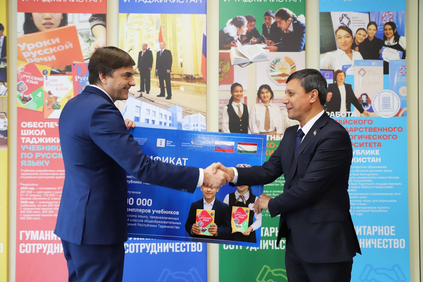 Министр просвещения России обратил внимание, что совместно с Комитетом по начальному и среднему профессиональному образованию при Правительстве Республики Таджикистан был подписан Меморандум о сотрудничестве в области среднего профессионального образования. Это станет еще одним важным шагом в расширении двустороннего сотрудничества.