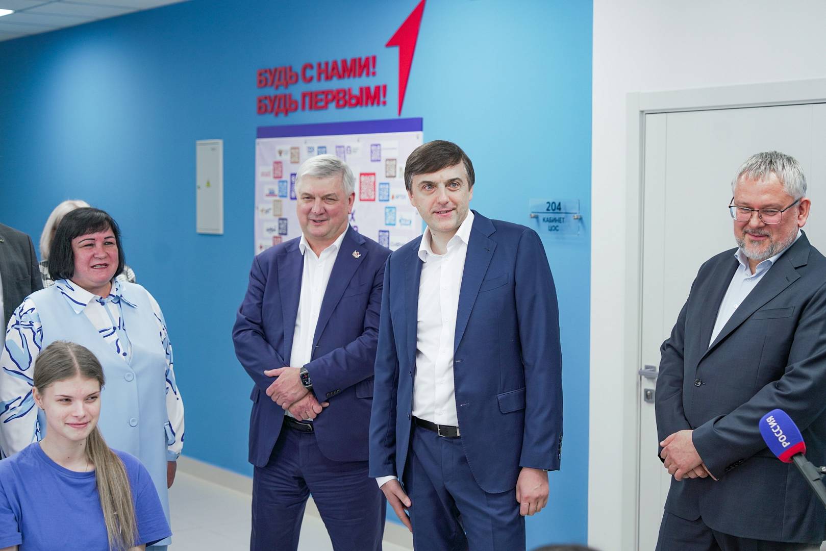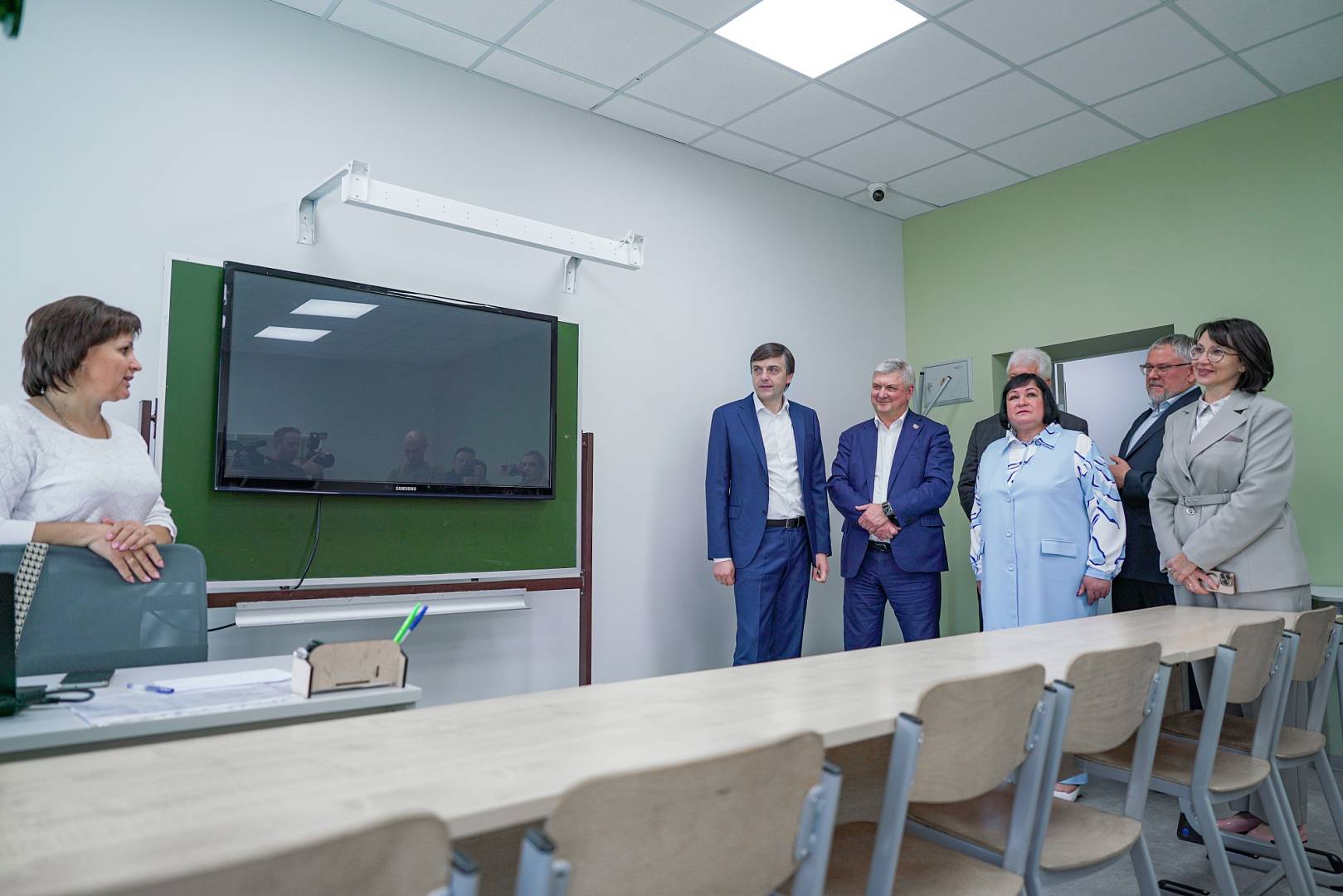 Министр просвещения России Сергей Кравцов вместе с губернатором Воронежской области Александром Гусевым посетил Нижнедевицкую гимназию.