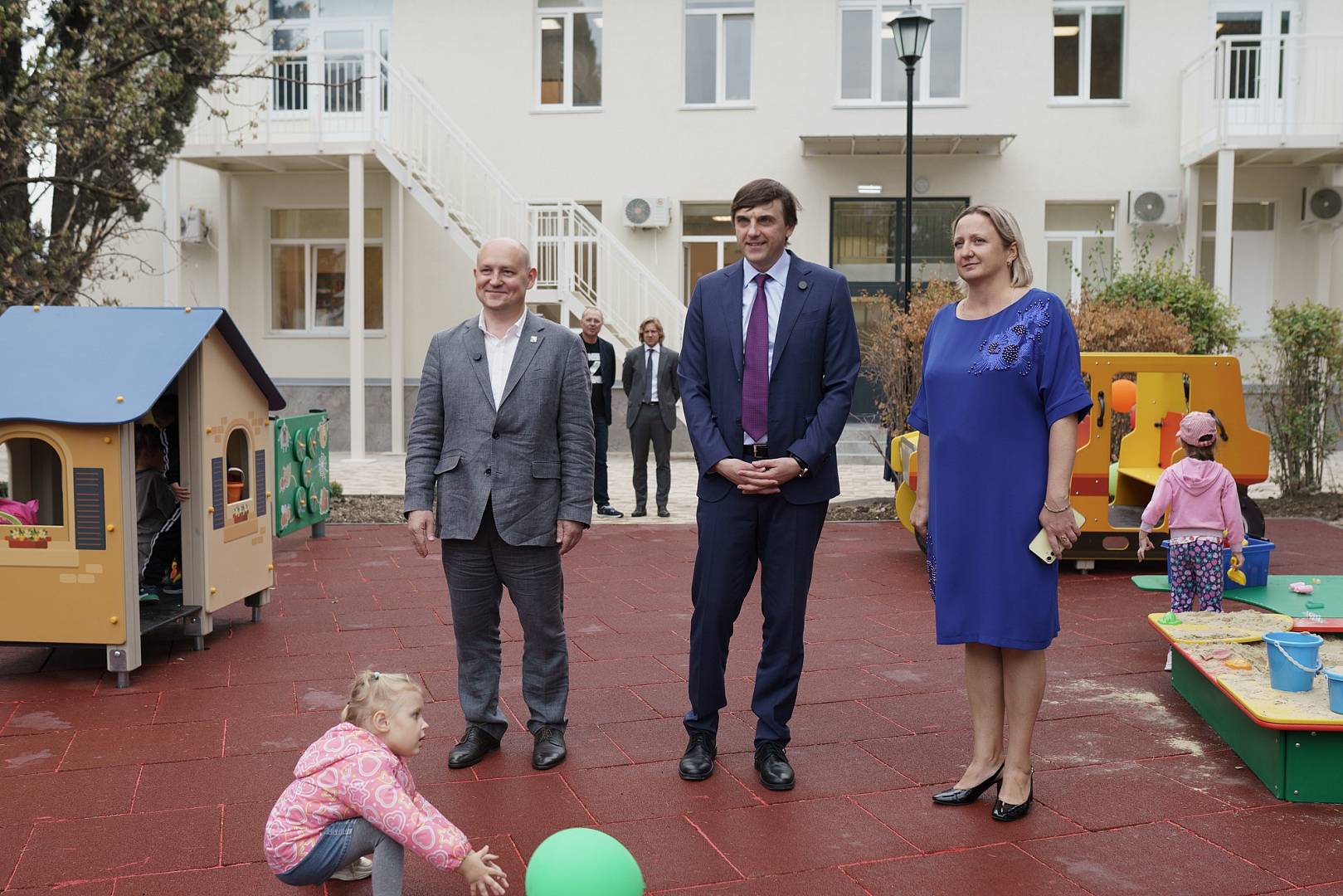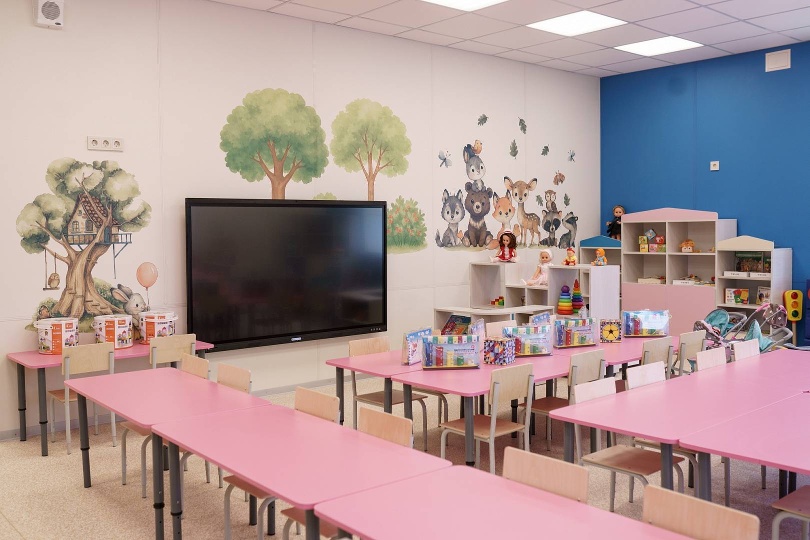 Дошкольное образовательное учреждение рассчитано на 75 мест. Помимо внутренней отделки помещений, спален, пищеблока, спортзала и коридоров, обновлен фасад здания, восстановлены декоративные элементы, полностью заменены внутренние инженерные сети. Благоустроена территория – установлены новые веранды, дорожки и современная спортивная площадка.