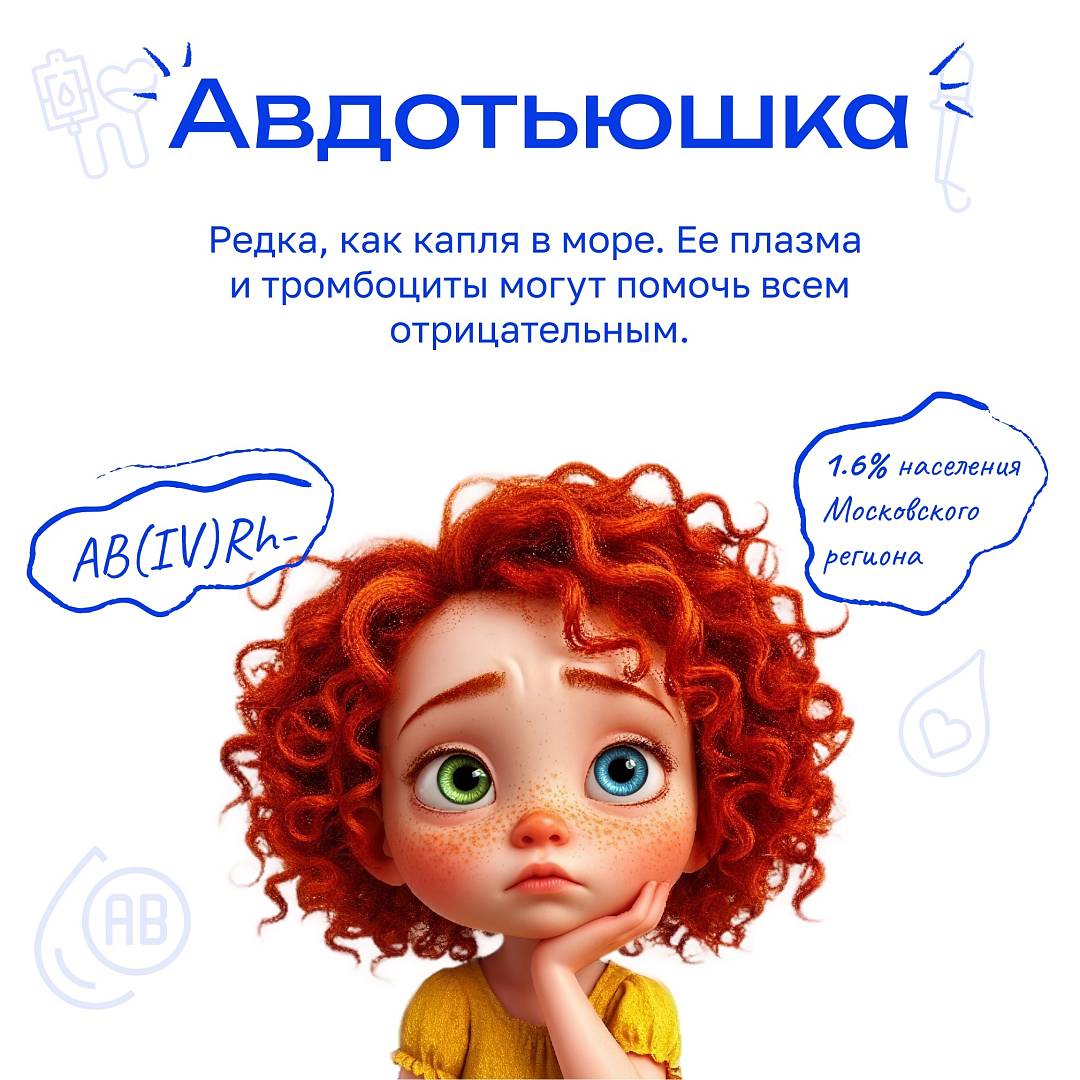 Группа крови и резус фактор— это не просто набор символов, а настоящий код, который рассказывает о суперсилах вашей героини. Да-да, настоящей героини, со своим именем, характером и предназначением. Доноры крови великодушно отправляют сестричек на помощь, потому что знают — кровь спасает жизни людей.