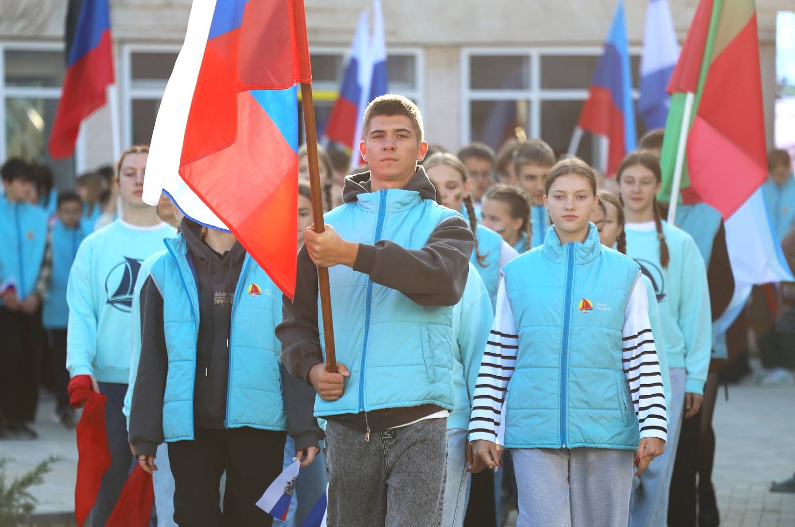 В честь праздника во Всероссийском детском центре «Алые паруса» состоялось торжественное шествие ребят с государственными флагами и песнями о России. Школьники также прочитали стихотворения и приняли участие во флешмобах.