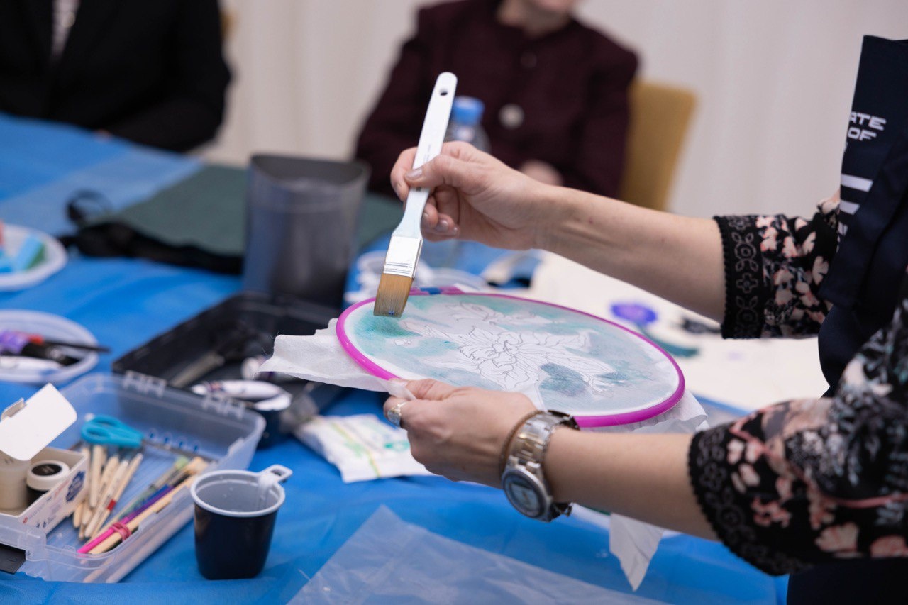 В рамках мероприятия преподаватели провели для сотрудников Министерства и приглашенных гостей мастер-классы «Цветы весны. Художественная кистевая роспись» и «Букет. Роспись по ткани».