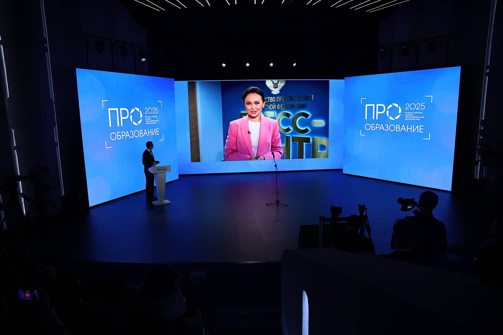 В Национальном центре «Россия» 12 декабря состоялась торжественная церемония награждения победителей и призеров Всероссийского конкурса журналистских работ в области образования «ПРО Образование» 2025 года. В ней приняли участие около 150 человек. Среди них – представители федеральных органов исполнительной власти и подведомственных Минпросвещения России организаций, известные спортсмены и артисты, а также партнеры конкурса.