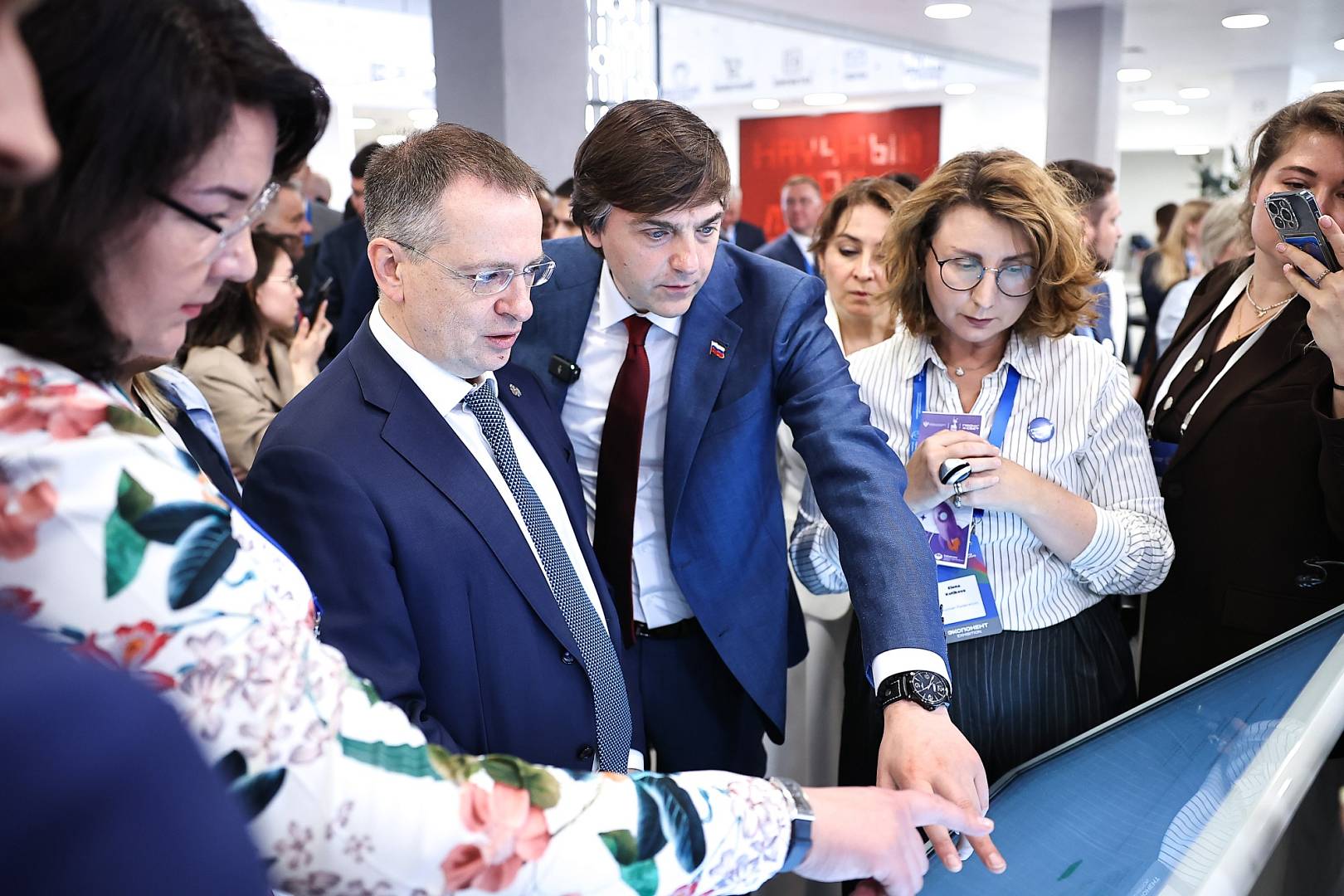 Так, Владимир Мединский и Сергей Кравцов ознакомились со стендами Единой модели профориентации «Билет в будущее» – уникальной российской системы ранней школьной профориентации, которая привлекает внимание иностранных делегаций.