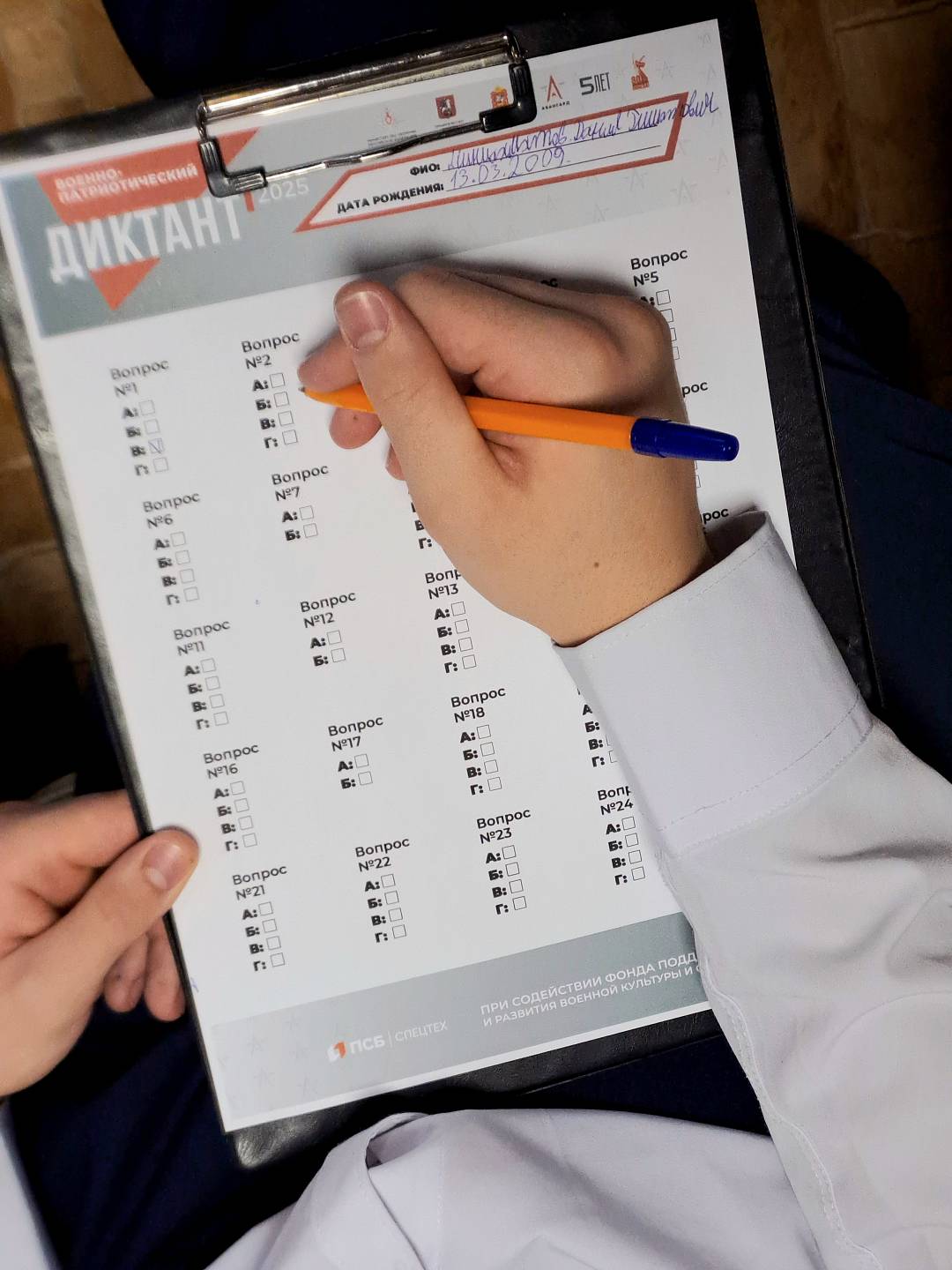 С целью популяризации военно-патриотического образования и воспитания граждан, повышения уровня патриотизма и развития ценностного отношения к сохранению культурного многообразия, наследия и истории народов Российской Федерации с 1 декабря по всей России стартовала IV Ежегодная всероссийская просветительская акция «Военно-патриотический диктант – 2025», организованная «Учебно-методическим центром военно-патриотического воспитания молодежи «Авангард» при содействии Фонда поддержки и развития военной культуры и отдыха.